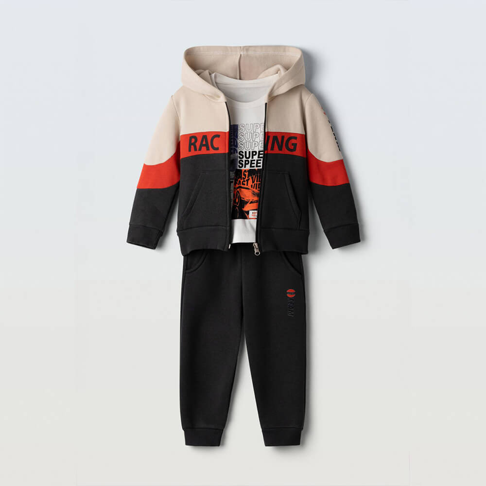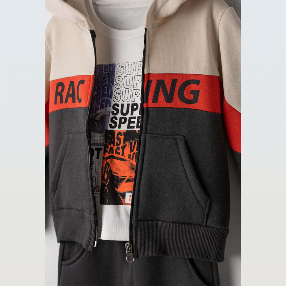 Σετ Αγόρι “Racing Speed” – Ζακέτα με Κουκούλα, Μπλουζάκι & Παντελόνι Φόρμας