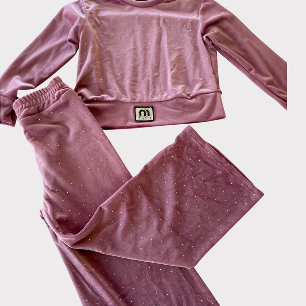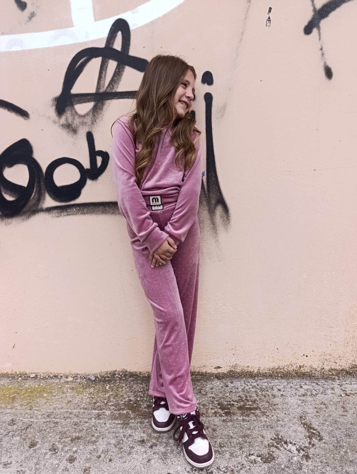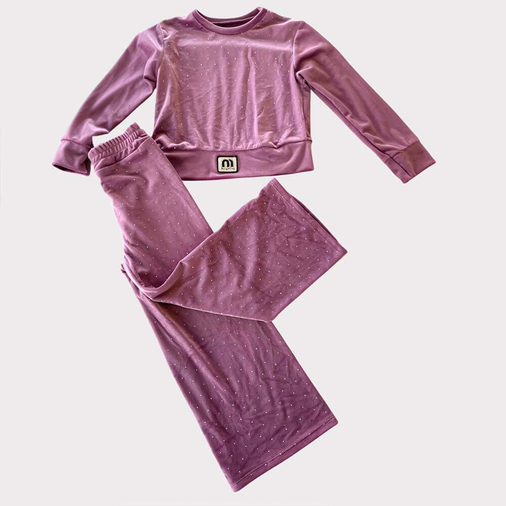 Το σετ “Pink Sparkle” είναι η απόλυτη επιλογή για κορίτσια που αγαπούν τη λάμψη και τη γλυκύτητα στο ντύσιμό τους. Είναι φτιαγμένο από απαλό βελούδινο ύφασμα σε ζεστή ροζ απόχρωση και κοσμείται με διακριτικά στρας που χαρίζουν μια διακριτική λάμψη.