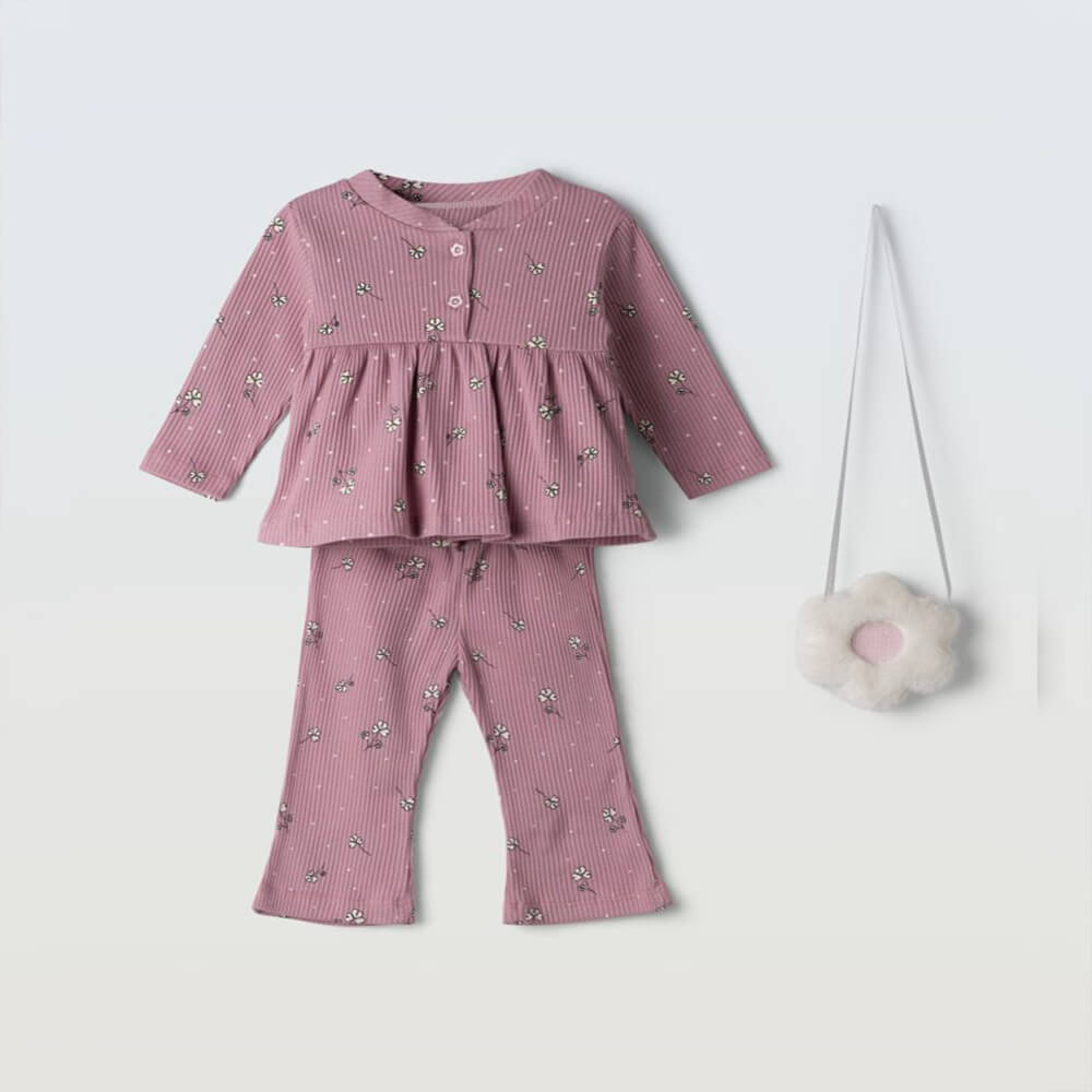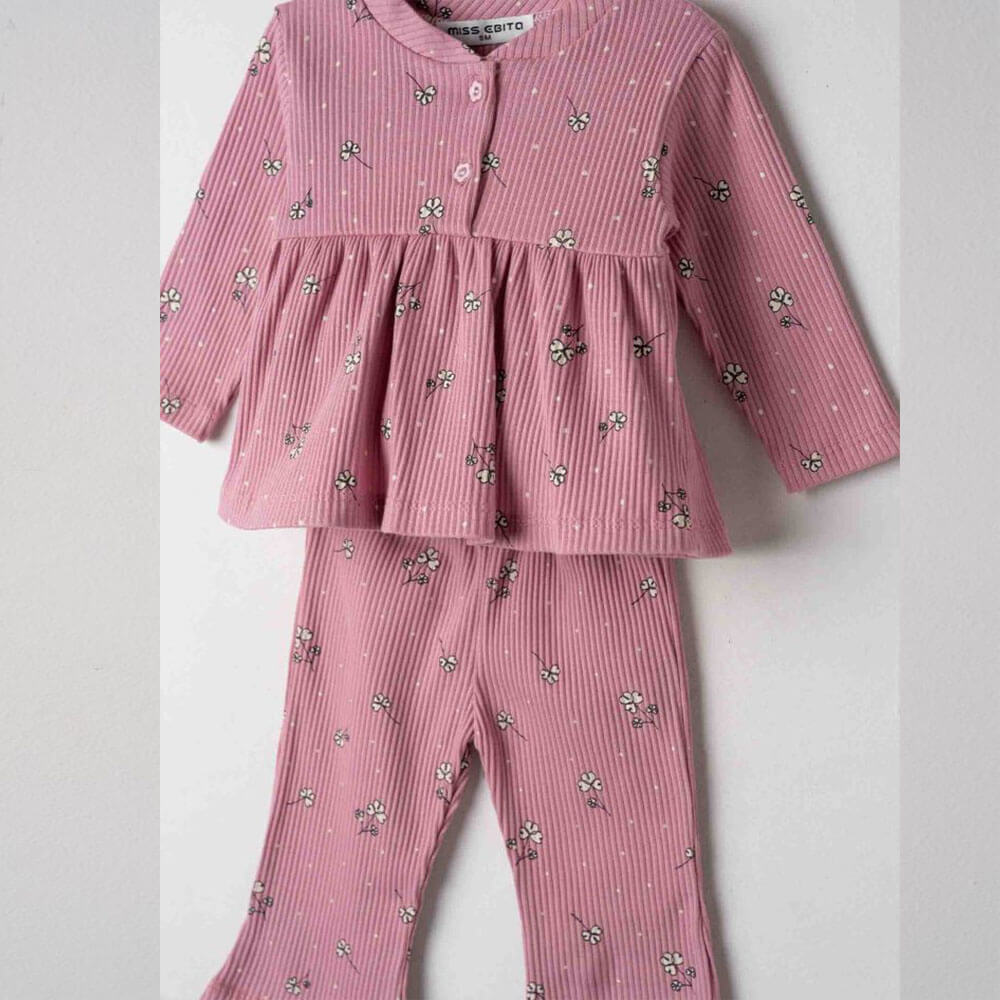 Το σετ “Floral Dreams” είναι μια ρομαντική πρόταση για τις μικρές μας κυρίες! Περιλαμβάνει μακρυμάνικη μπλούζα σε ροζ απόχρωση με διακριτικό λουλουδάτο μοτίβο και κουμπάκια στο στήθος, καθώς και ασορτί παντελόνι. Το απαλό, ριμπ ύφασμα προσφέρει άνεση και ελευθερία κινήσεων, ενώ η αέρινη γραμμή της μπλούζας δίνει μια girly αίσθηση.