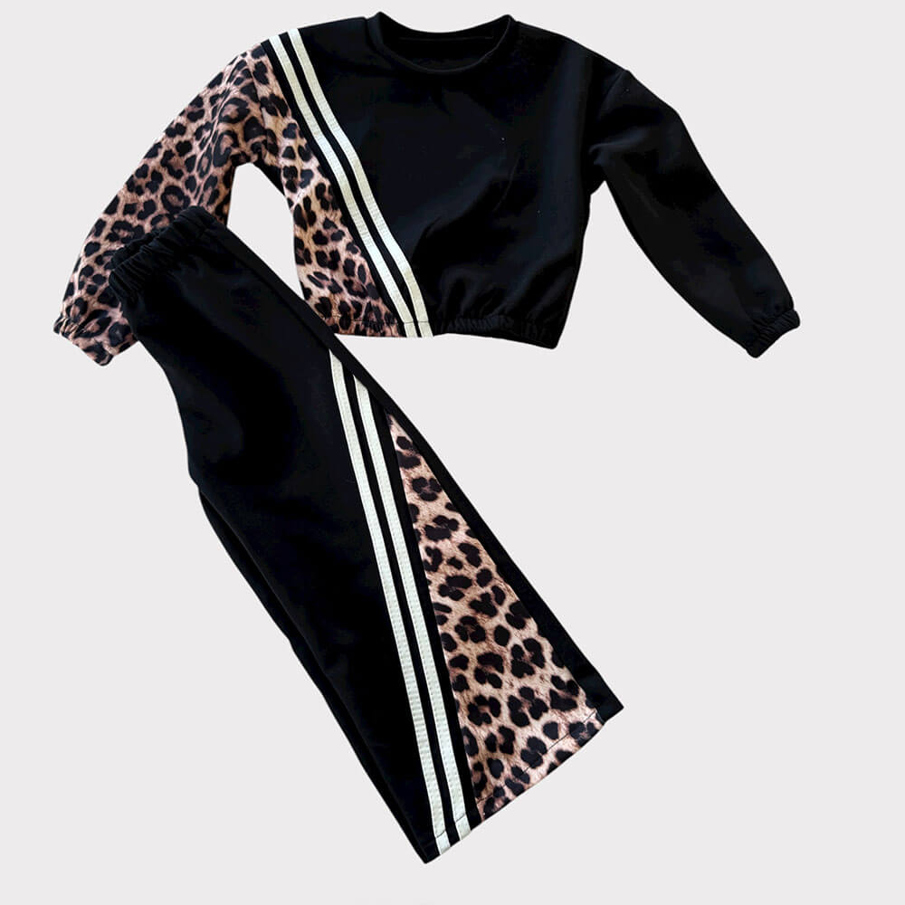 Το σετ “Wild Edge” είναι ο απόλυτος συνδυασμός στυλ και δυναμισμού! Με μοντέρνο design που περιλαμβάνει εντυπωσιακές λεοπάρ λεπτομέρειες και λευκές ρίγες, προσφέρει ένα ξεχωριστό streetwear look για κορίτσια που αγαπούν τη μόδα.